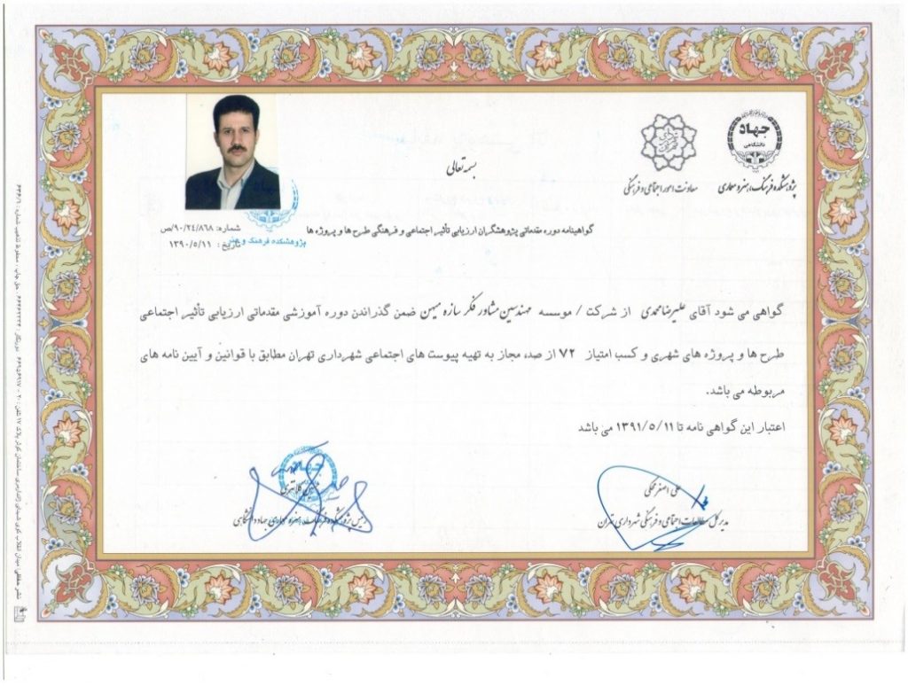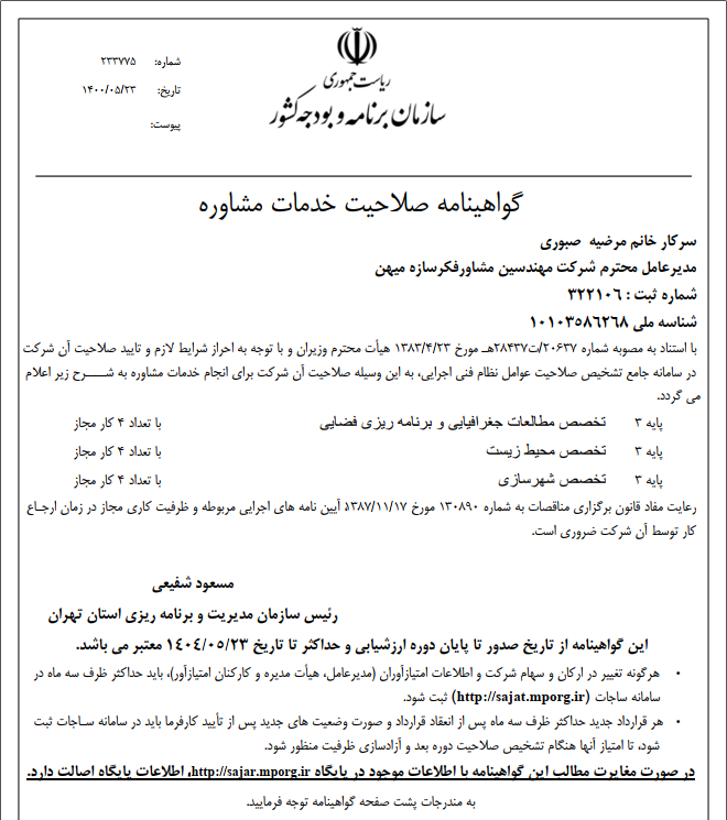 گواهی نامه صلاحیت خدمات مشاوره